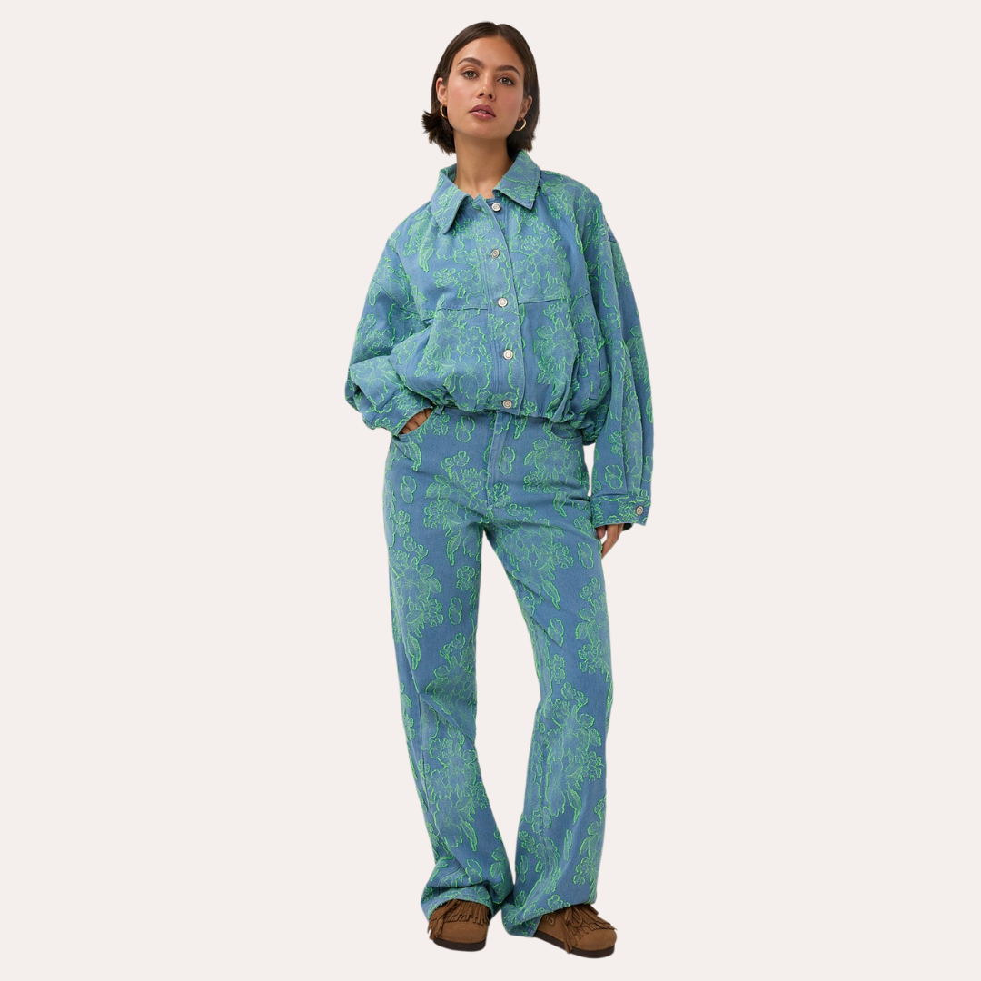 De Anna broek van Studio Amaya is een wide leg jeans met geborduurde groene bloemen. Met deze statement broek heb je de perfecte showstopper voor jouw look.