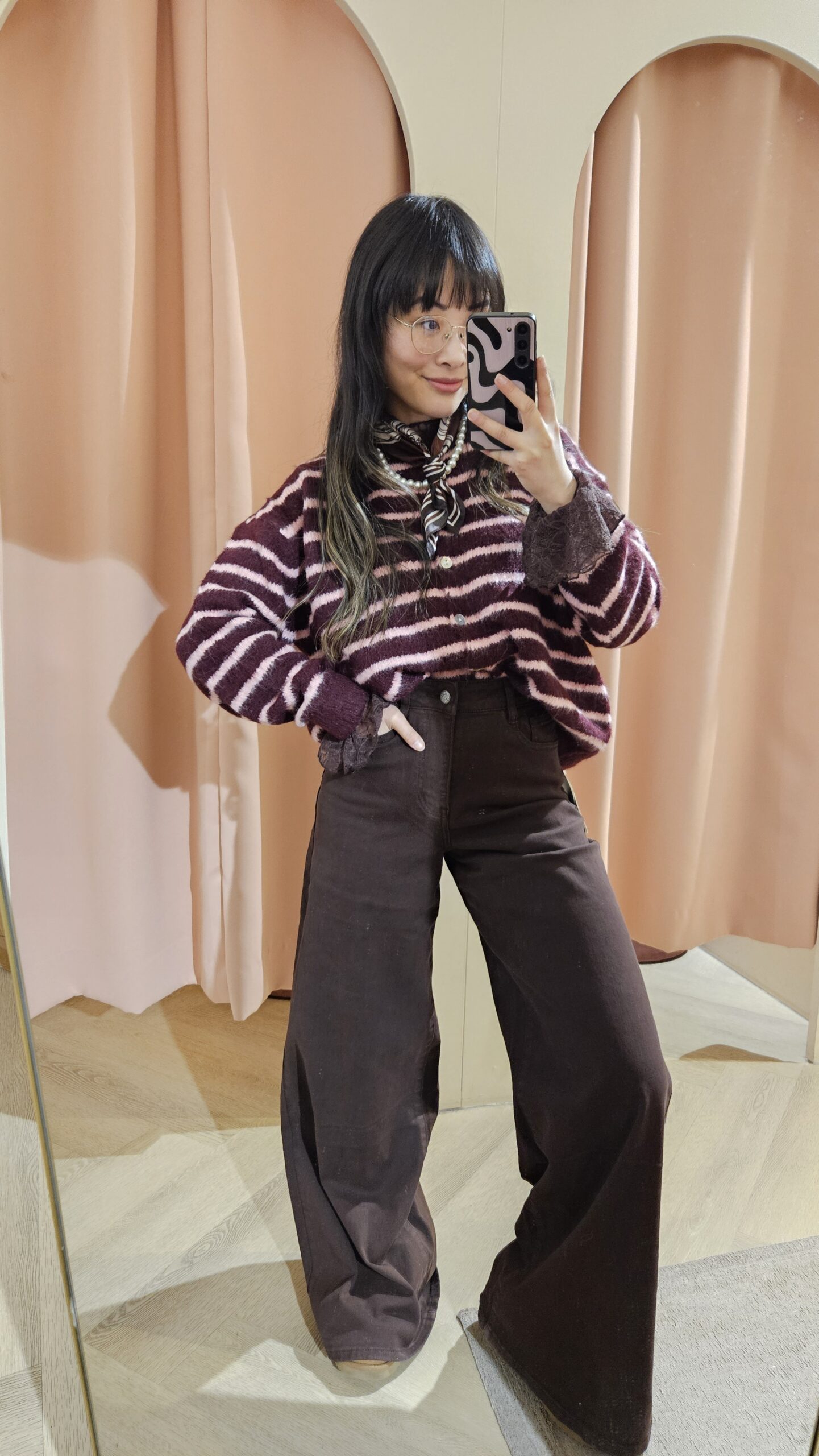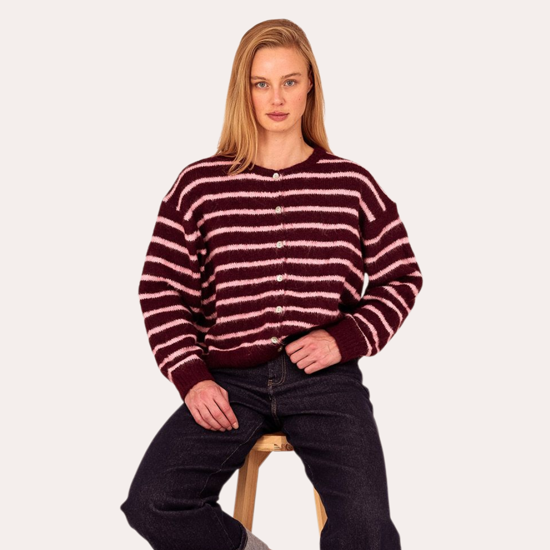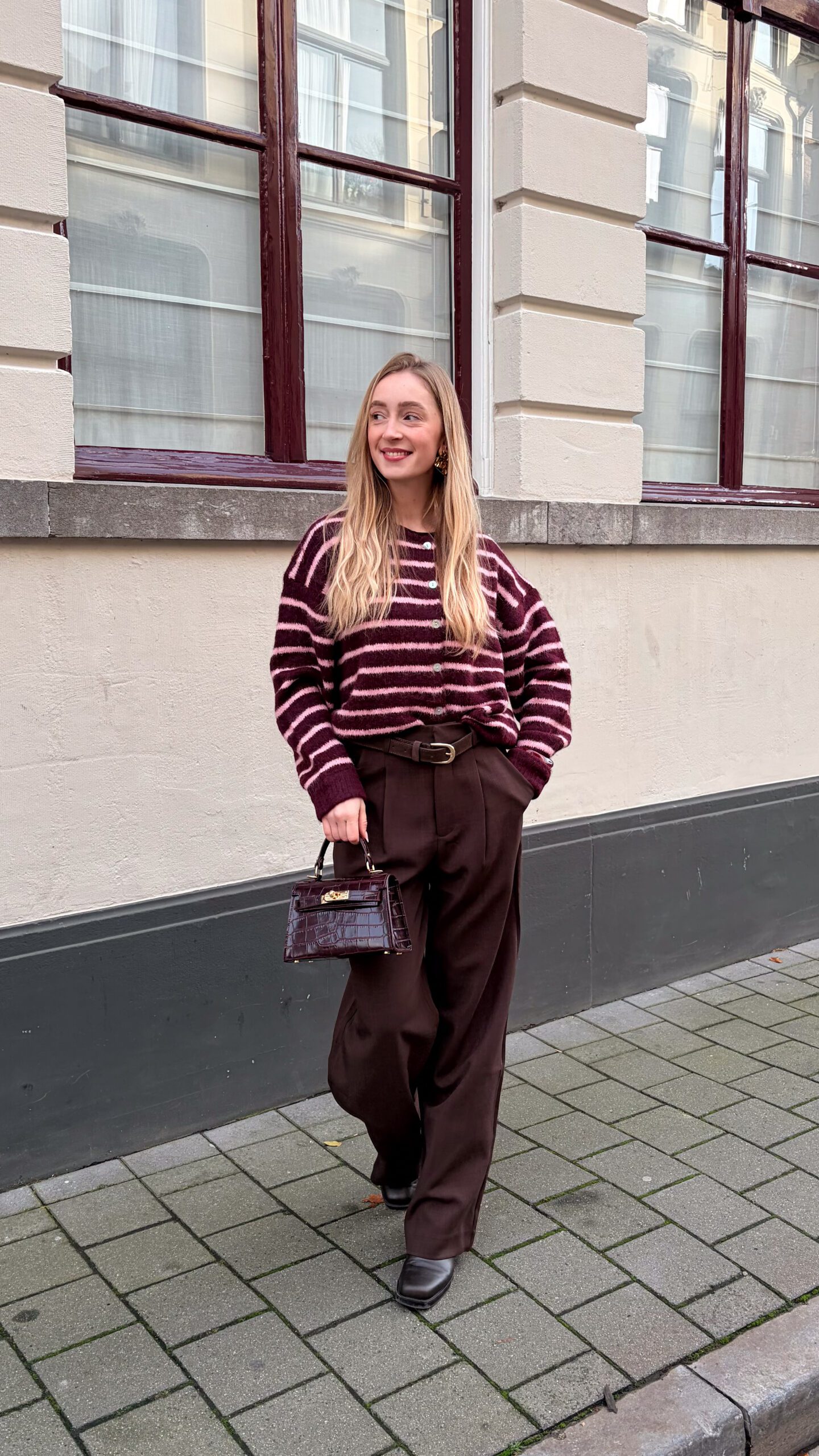 Onze bestseller dit seizoen nu met bordeaux en lichtroze strepen! Dit heerlijke gestreepte vest met lange mouwen is een warme musthave basic voor de winter!
