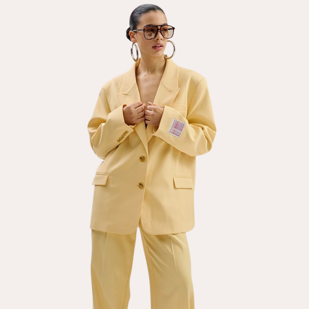 De ANNA blazer is een klassieker met een eigentijdse twist. De licht gele kleur geeft deze oversized blazer een frisse uitstraling.