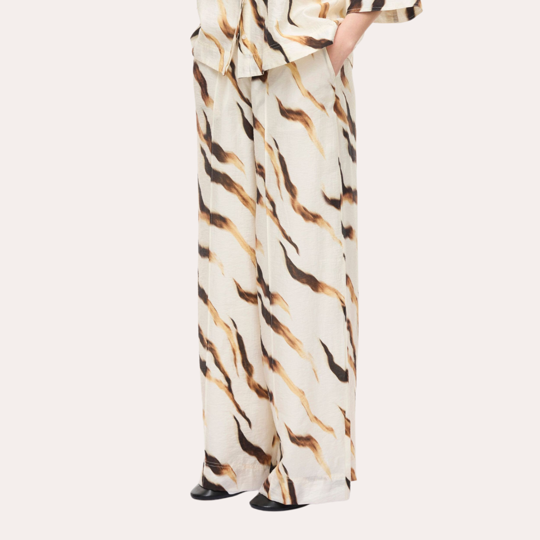 De ROUALANA broek is een luchtige wide leg broek met comfortabele elastieken band en steekzakken. De broek heeft een vrouwelijk en chique zebraprint.